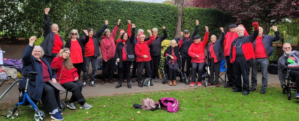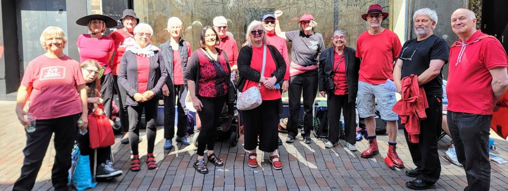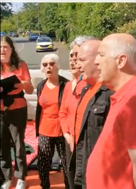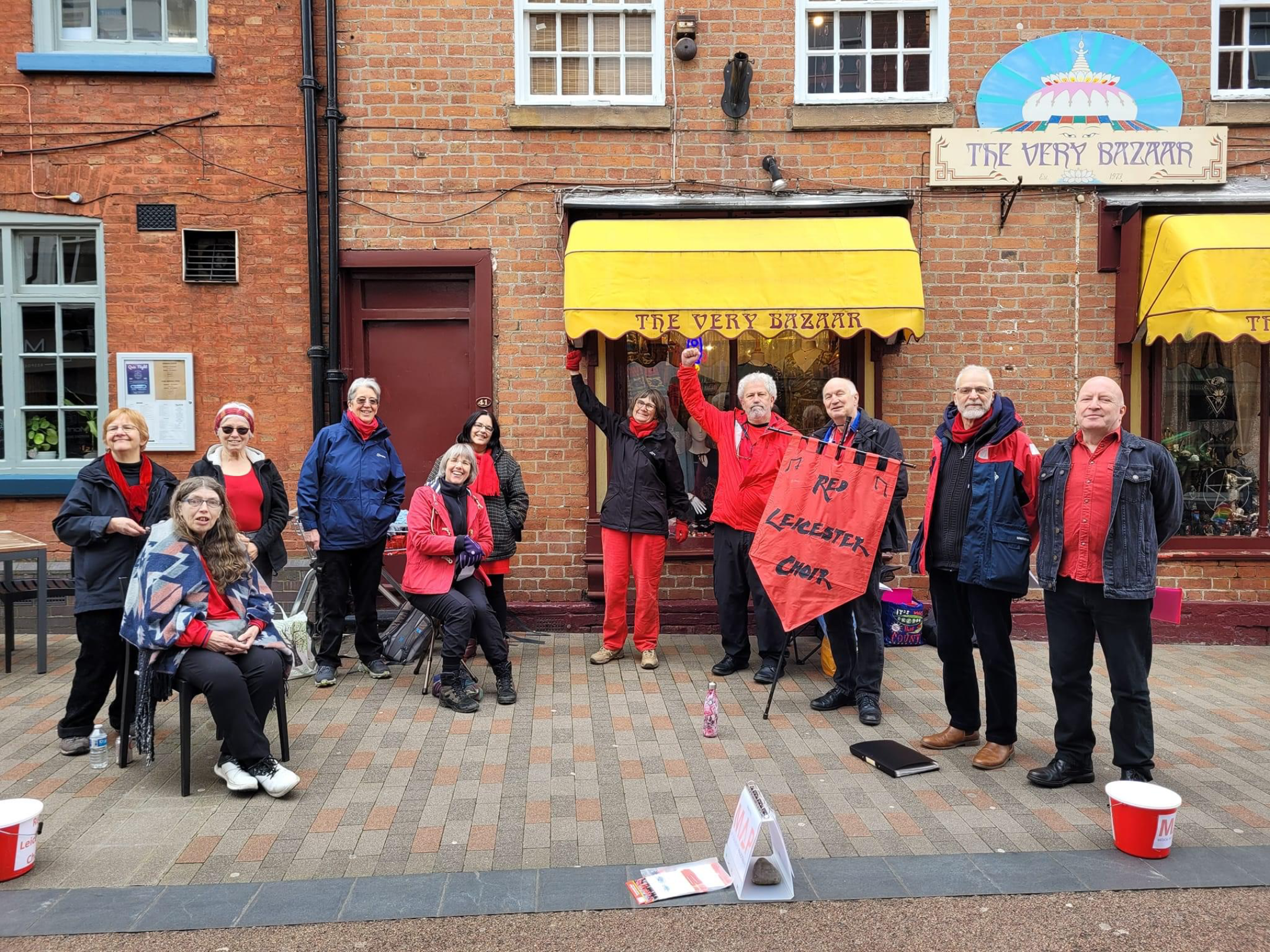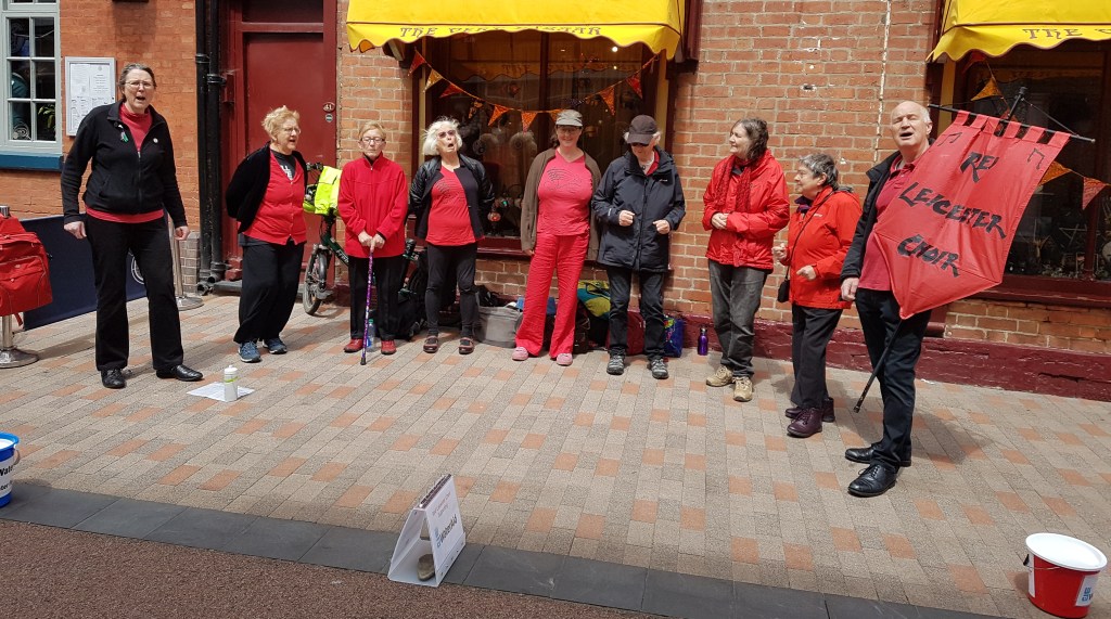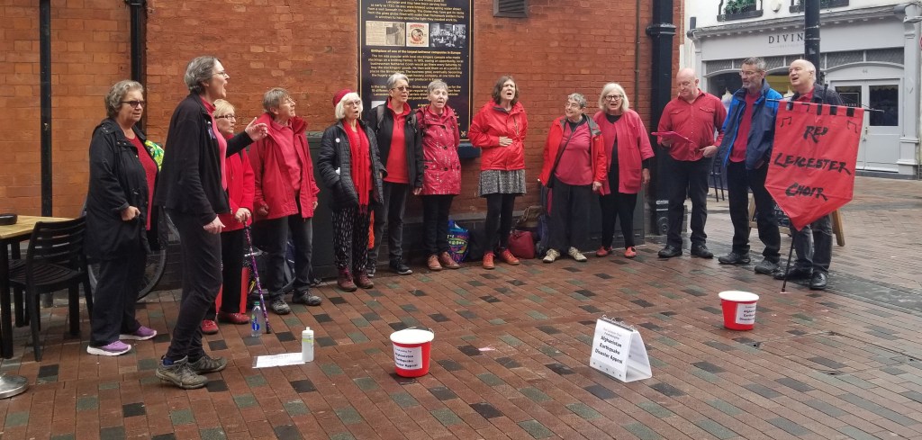 Red Leicester had a busy start to the month when they raised over £120 for local foodbanks through busking in the city centre. Following this, they moved across to Jubilee Square to sing at the rally organised by Enough Is Enough to campaign against the cost of living crisis. Many people stopped to listen and lots joined in with the choir’s rendition of The Tory Right. Gary O’Donnell, one of the organisers, commented: ‘Thanks for Saturday you were fantastic and so well received …. it was a great event that your contribution as the choir was greatly received‘.