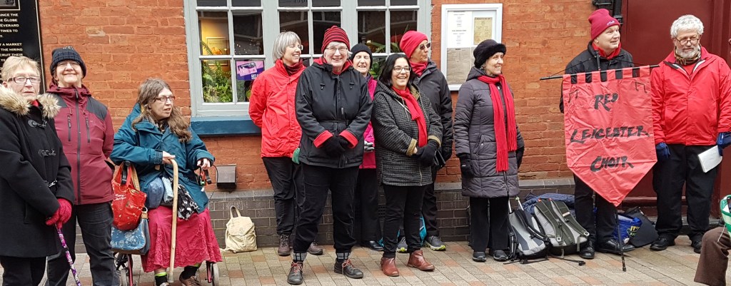 Red Leicester is Leicester’s socialist choir singing songs expressing social and political protest, and songs of worldwide celebration, struggle and change. To find out more about us, including when and where we meet and how to join us, please click here.