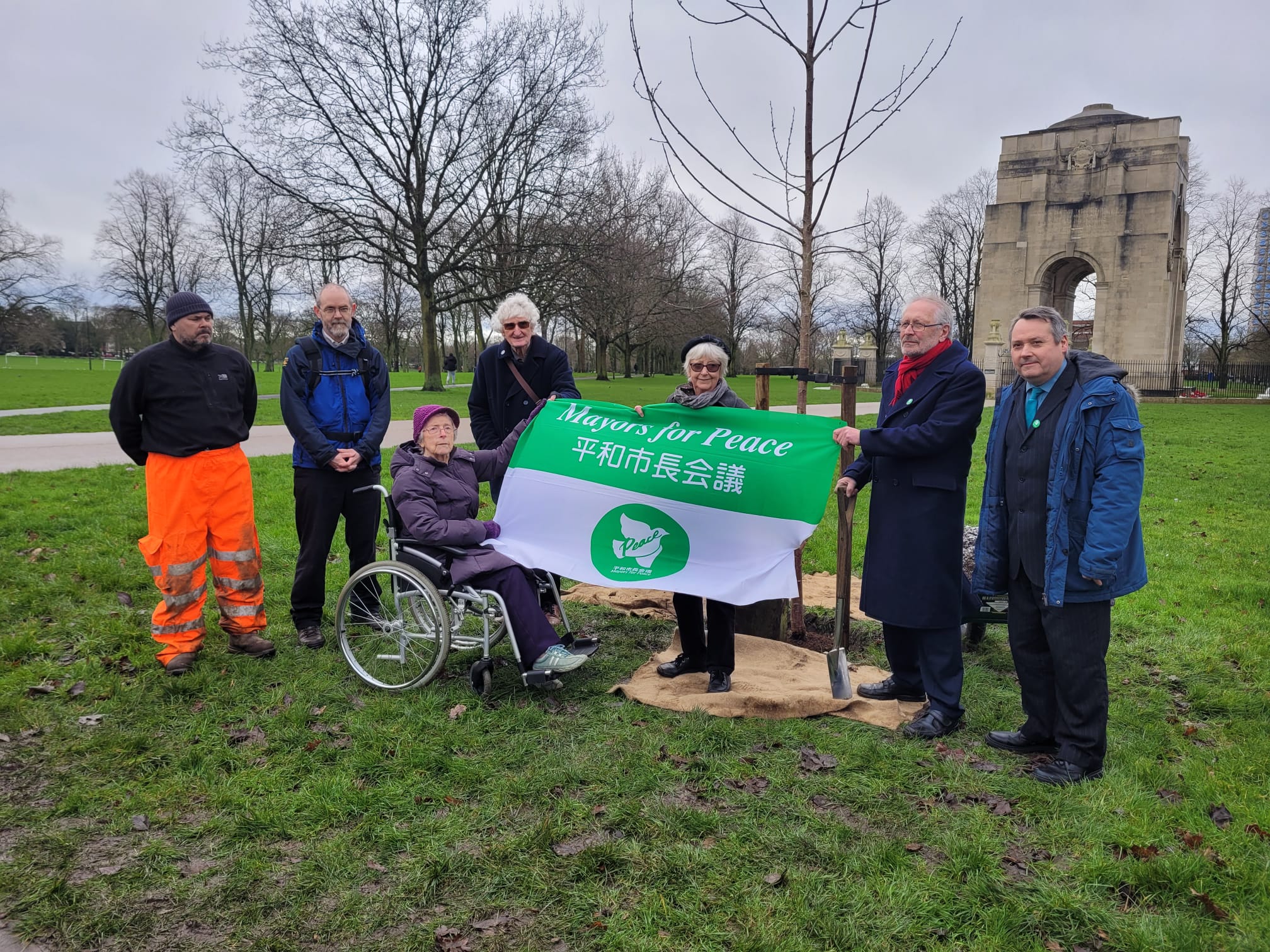 Red Leicester sang at a ceremony organised by Leicester CND and attended by two Mayors for peace, Leicester’s Mayor, Peter Soulsby and Richard Altram, who represented the international network of Mayors for Peace. A cherry tree was planted to remember victims of war. It proved to be both emotional and uplifting as we sang all together and listened to poems and speeches.