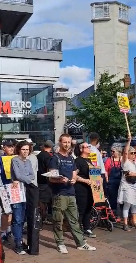 The cathedral bell ringing encouraged us to move venue at our monthly busk on Saturday 8th July which raised £50 for Leicester City of Sanctuary for their work with people seeking sanctuary. We then went to the Palestinian Solidarity rally at Town Hall Square and sang Shut Elbit Down. Leicester’s Elbit drone factory is still under siege since the first of May.