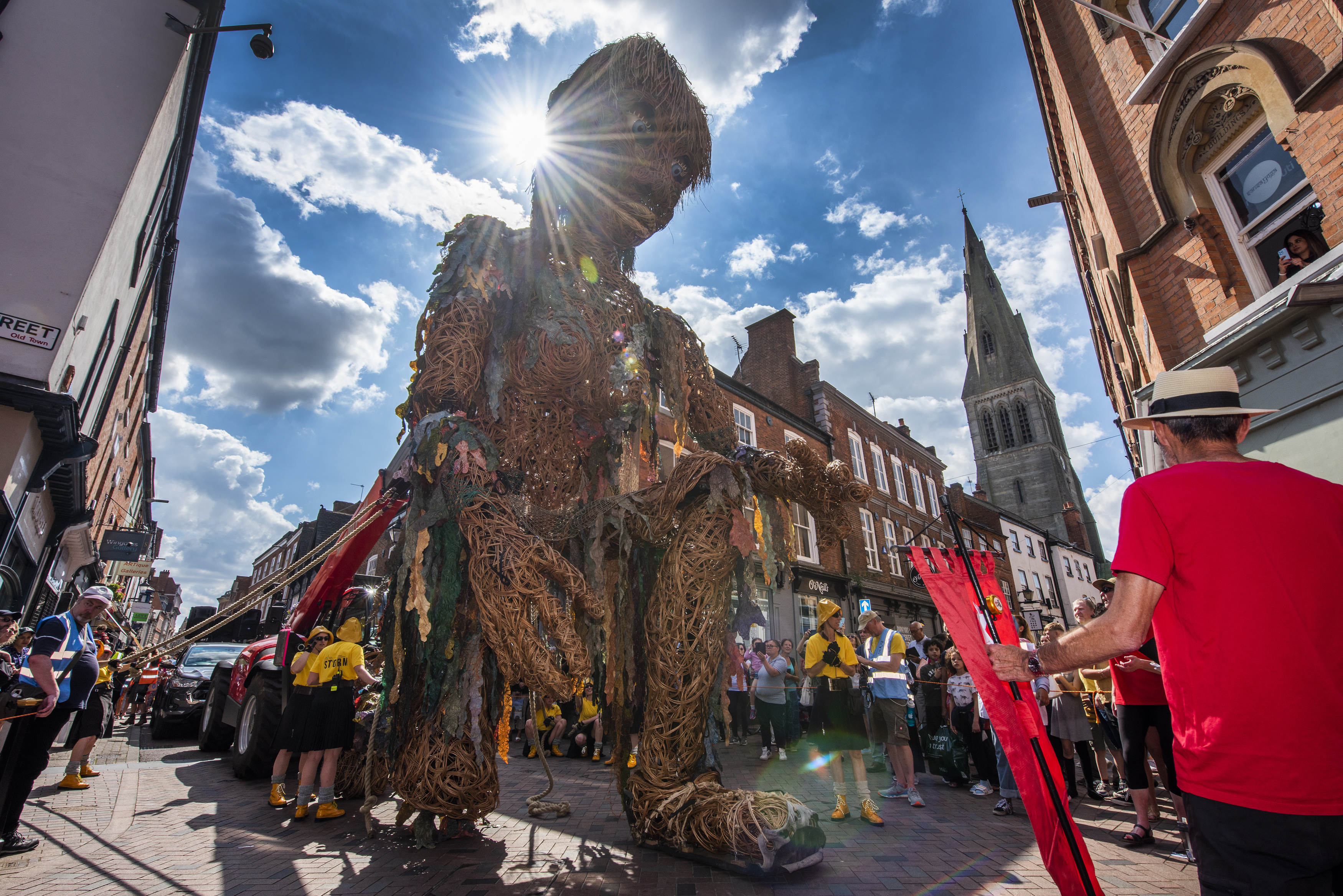 Red Leicester sang Bella Ciao and There Is No Planet B to welcome the giant puppet, Storm, to Leicester as part of the City Festival. The puppet is ‘a goddess of the sea’, over 10m tall, composed entirely from recycled materials and is intended to encourage people to care for the environment. On her first visit to England (she hails from Scotland!), she certainly caused a stir in Leicester walking around the streets of the city centre!