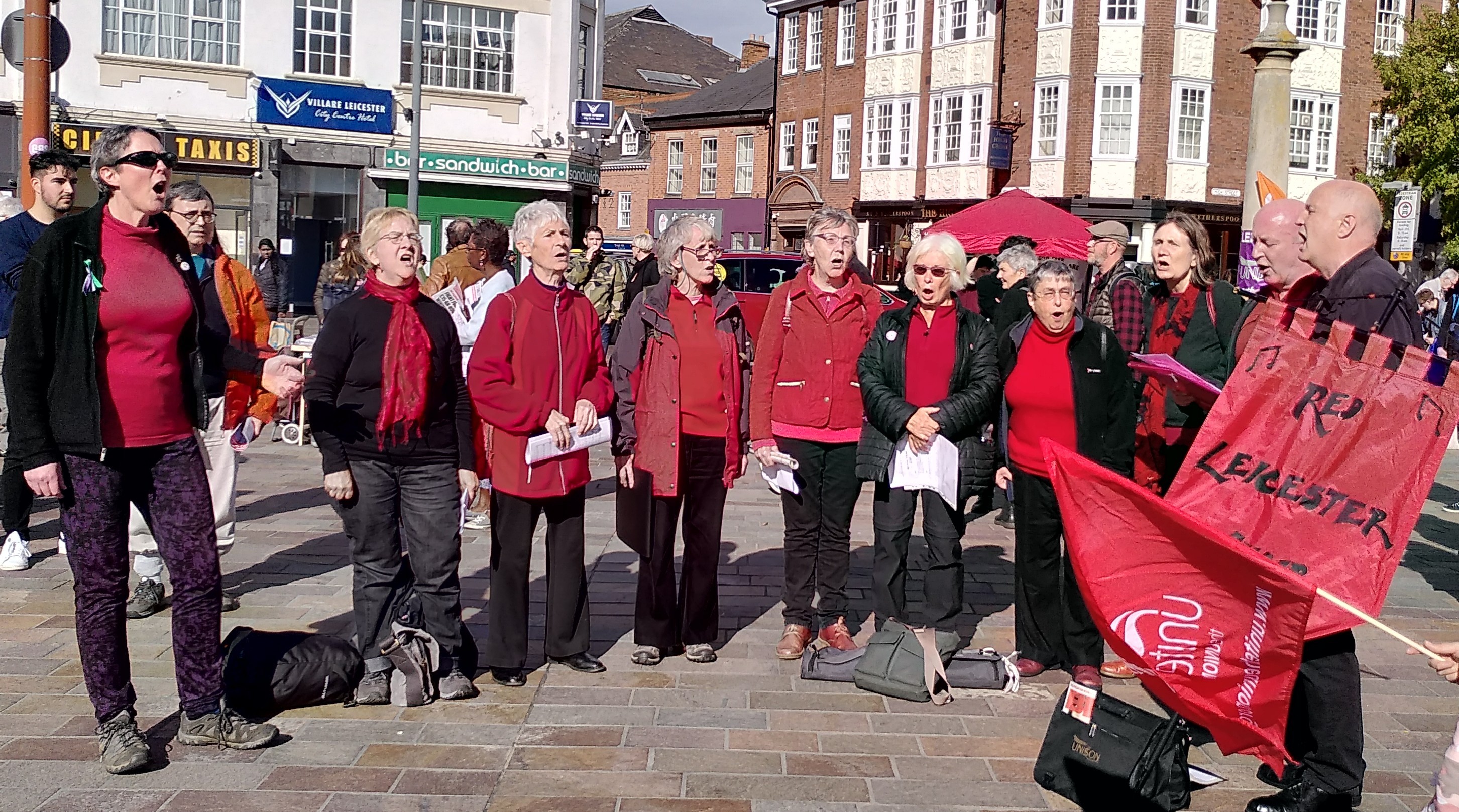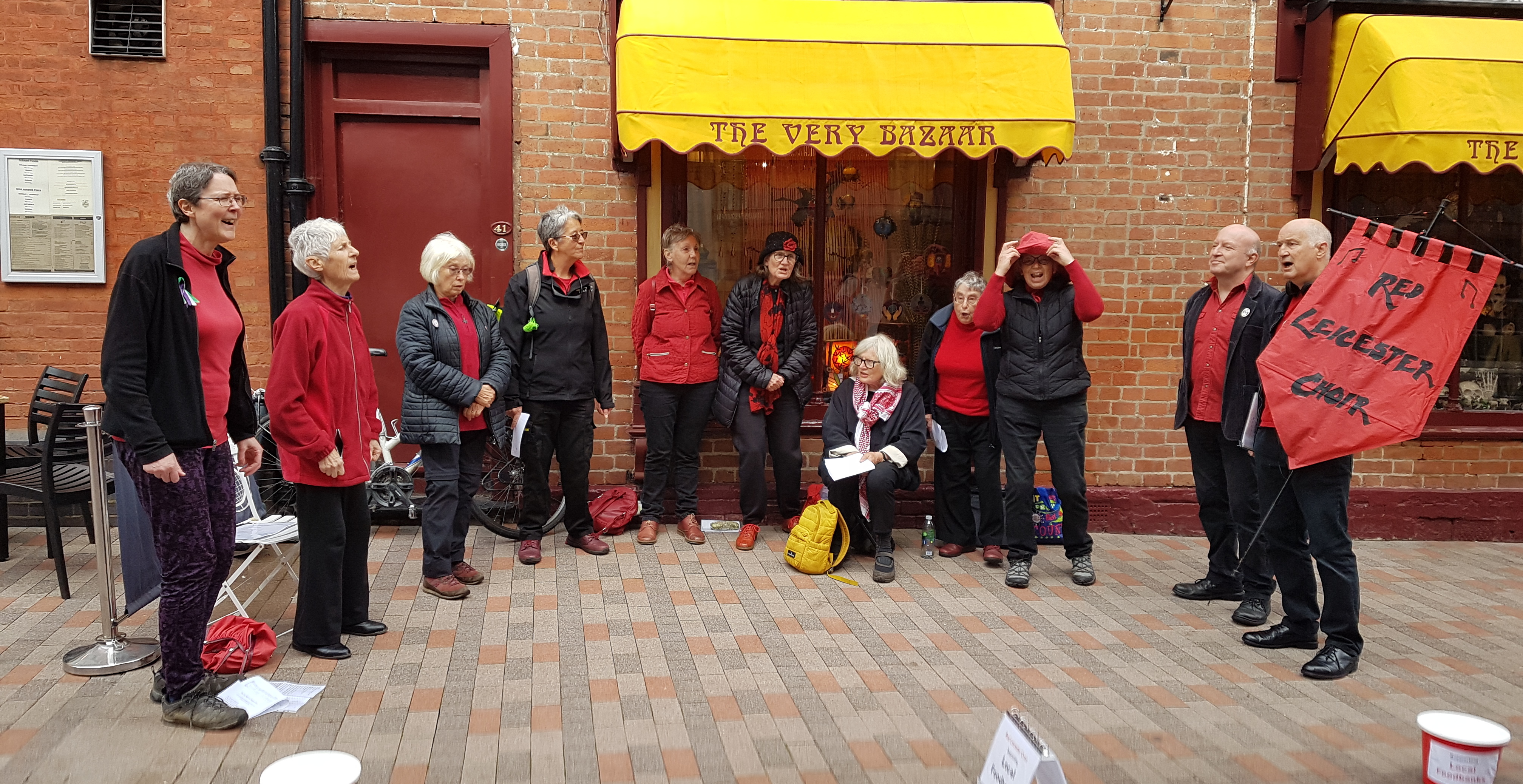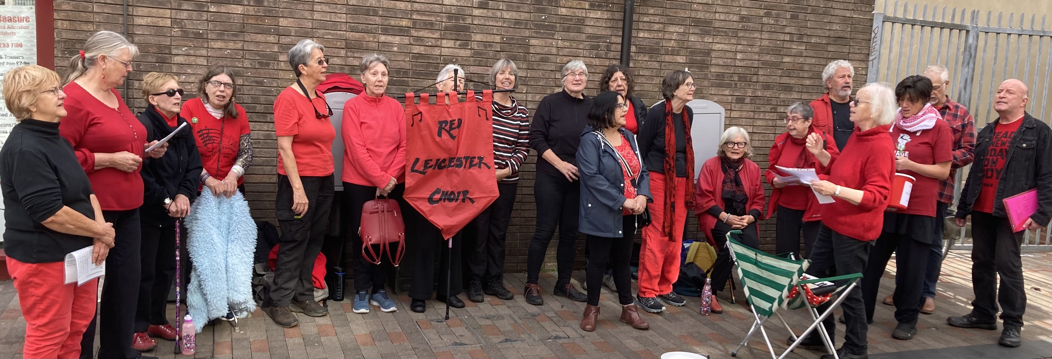 Red Leicester is Leicester’s socialist choir singing songs expressing social and political protest, and songs of worldwide celebration, struggle and change. To find out more about us, including when and where we meet and how to join us, please click here.