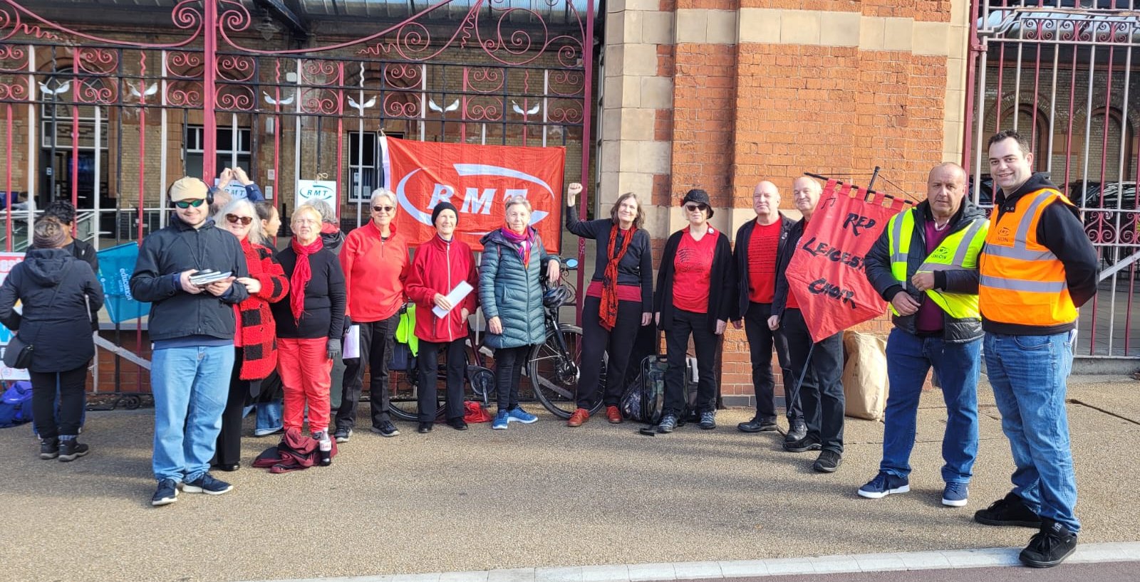 To demonstrate solidarity with all workers taking industrial action over their pay and conditions, Red Leicester sang on the National Union of Rail, Maritime and Transport Workers (RMT) picket line at Leicester station. The choir felt it important to show their support for the RMT’s struggle in defence of their livelihoods and in the face of a Tory government intent on making working people pay for their own incompetence and mismanagement.