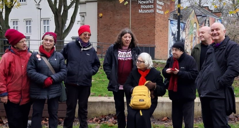 Red Leicester Choir members were privileged to sing Jan’s favourite songs at her wake on 11th October. Jan was a formidable and fiery member of Red Leicester for many years. Her activism goes back to Greenham Common Peace Camp. She stood up for women, Working people, refugees and other oppressed peoples across the word. She was once called a “loose cannon” and took this label with pride. A force of nature, Jan was fiercely independent and leaves her daughter Ellie and grandson George. She will be sadly missed. We sang Unison in Harmony, I am a River, Rosa’s Lovely Daughters and our anthem, The Internationale.