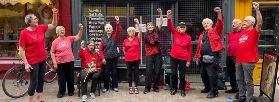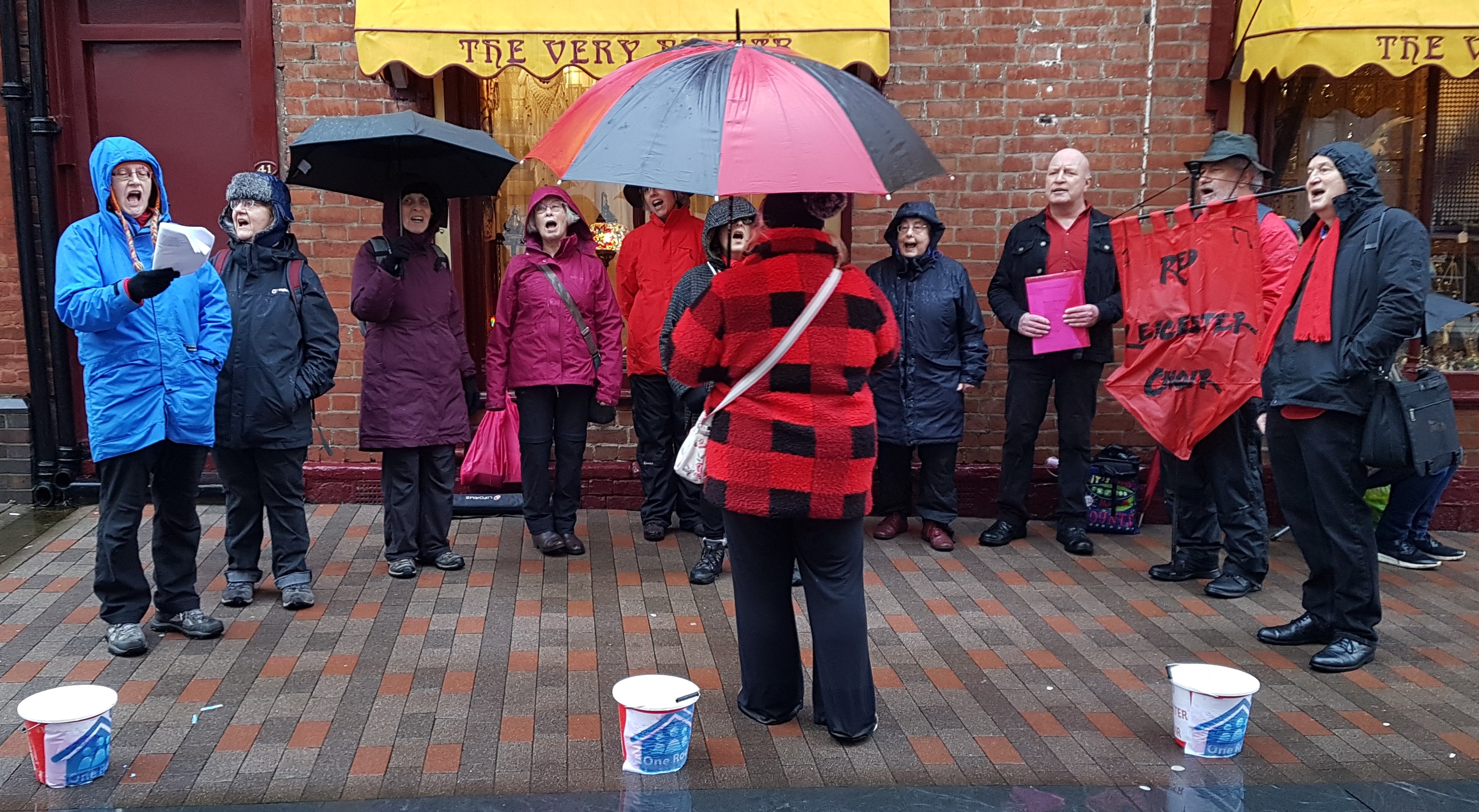 Red Leicester had a busy start to the month when they raised over £120 for local foodbanks through busking in the city centre. Following this, they moved across to Jubilee Square to sing at the rally organised by Enough Is Enough to campaign against the cost of living crisis. Many people stopped to listen and lots joined in with the choir’s rendition of The Tory Right. Gary O’Donnell, one of the organisers, commented: ‘Thanks for Saturday you were fantastic and so well received …. it was a great event that your contribution as the choir was greatly received‘.