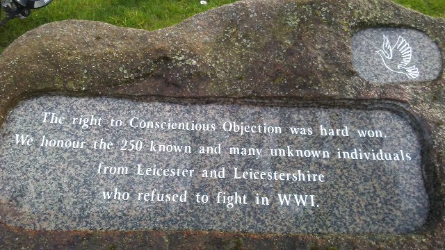 Red Leicester joined other Leicester folk in commemorating and celebrating the brave people who have stood out against war and for peace over the last 100 years or more. The choir performed Lay It Down to begin the proceedings and Song of Peace right at the end. In between there were poems, testimony and readings from others; a defiant and moving occasion held at the memorial to conscientious objectors in Peace walk.
