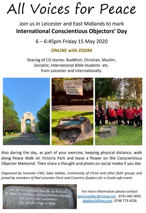 At the annual International Conscientious Objectors’ Day ceremony on (15th May 2018) on Peace Walk, Red Leicester sang several songs following news about Eritrean refugees and an update on the 2017 Leicester Charter on the militarisation of young people.