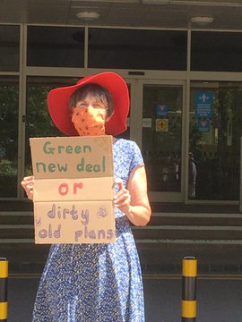 Red Leicester outside Barclay’s Bank after the anti-fracking flash mob event (6th May 2017):