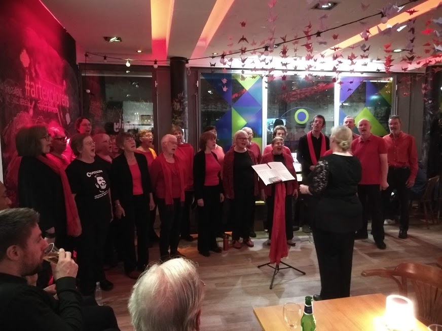 Red Leicester below after performing at the Upstairs at the Western theatre’s Choir Night on (27th March 2019):