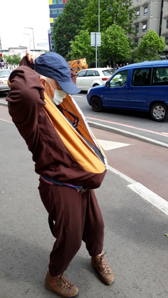 Singing “You’re nowhere if you believe Theresa May” a line from Citizen Shanty (Commoners Choir). We raised £130 on Saturday May 14th, busking for Waging Peace for their work with victims of war in Sudan.
